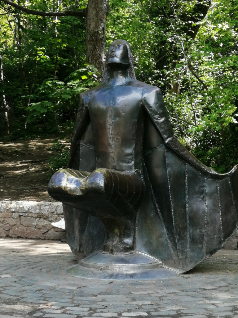 On the way down the other side of Killiney Hill, a view westward towards where the Dublin Hills run southward into the Wicklow Mountains. (Photo: D.Breatnach)“Thus Daedelus flew” says the inscription on the bronze statue on the way down, which I do not recall from boyhood, nor the cafe it is facing. (Photo: D.Breatnach)