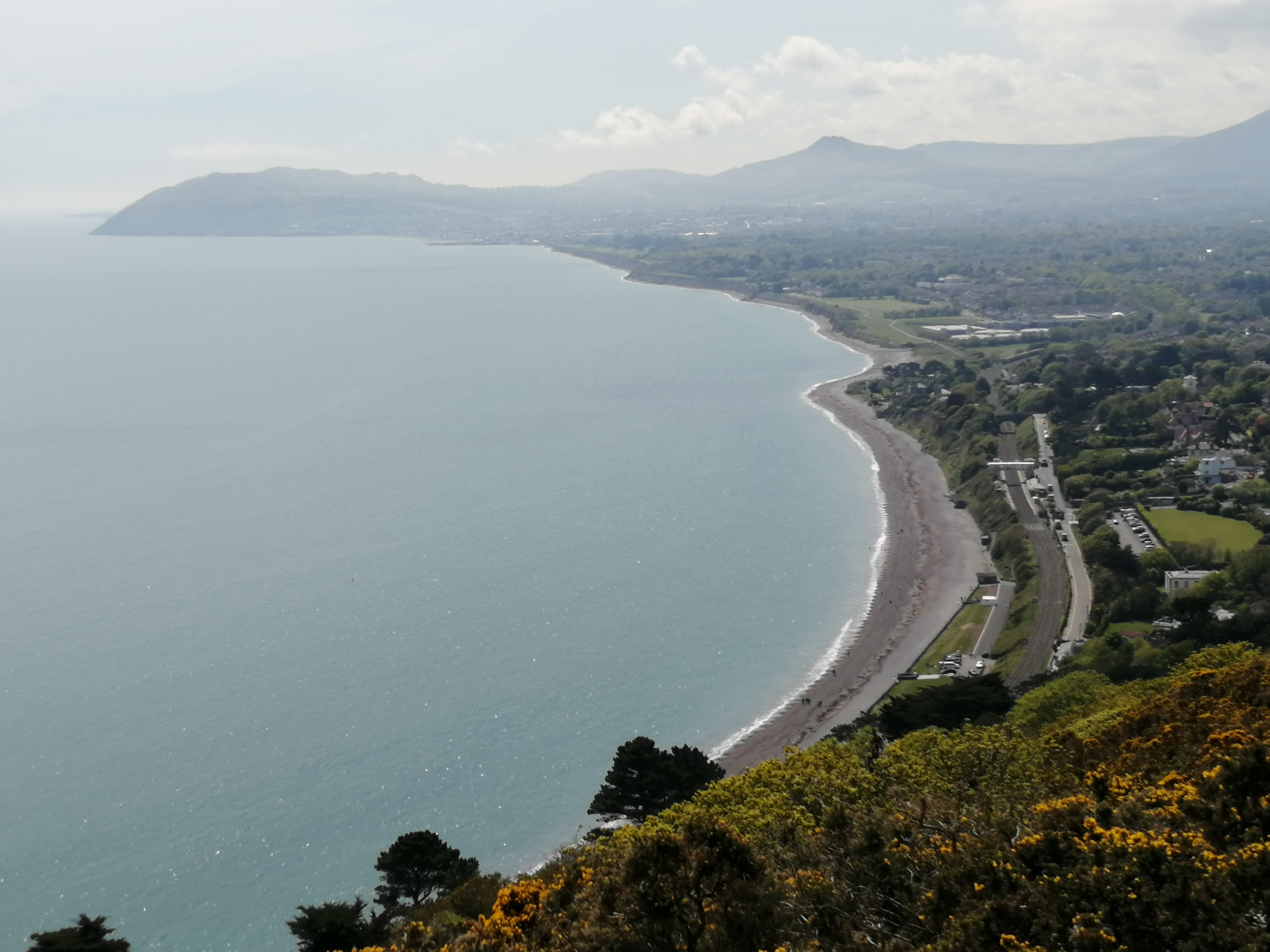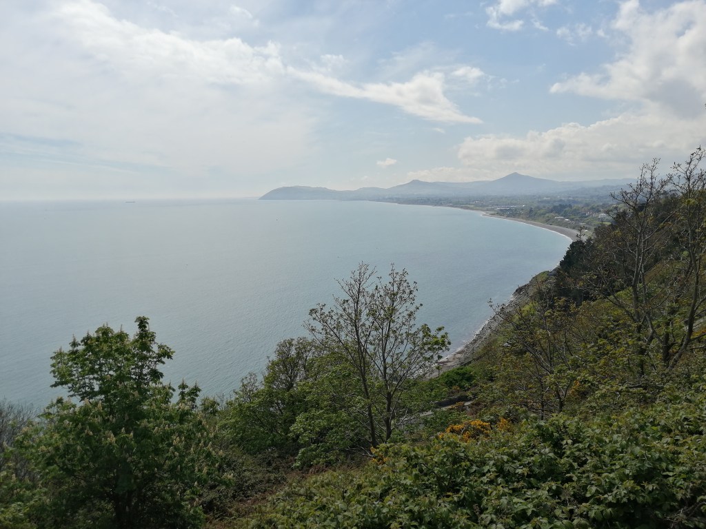 A great view of the bay from the path, the pronounced peak of the Sugarloaf in the distance. County Wicklow begins just a little down below to the right. (Photo: D.Breatnach)