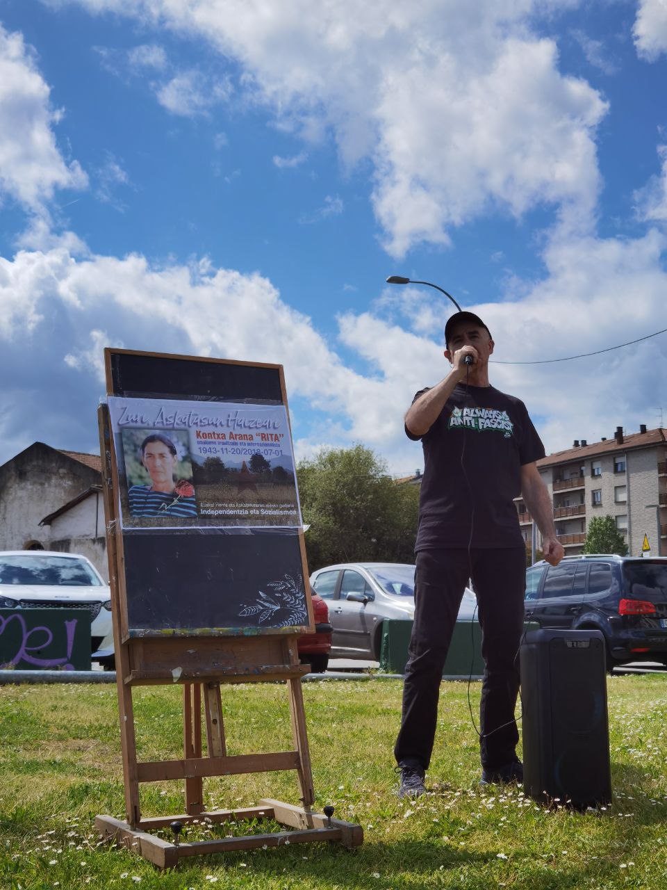 These talks were followed by a break and, upon resumption, there were some contributions from the floor and some responses from the panel, after which all repaired to the green outside the Astra building to where the ceremony of respect to the memory of Kontxi “Rita” Arana was to take place.