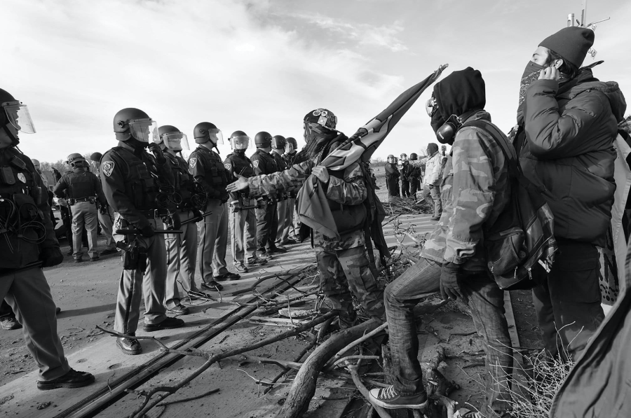 In the Spring of 2016, The Lakota mobilized to protest the pipeline, but it seemed like David fighting Goliath. The protests, which lasted months through sub-zero winter temperatures, were organized by Lakota teenagers on the Standing Rock Reservation. In the vanguard of the protesters were women who defied mace attacks, arrests and strip searches. The police used teargas, bulldozers and “military-style counterterrorism measures” to suppress the protesters, but the Standing Rock protests attracted tens of thousands of Native Americans from across the continent, becoming the largest Native American demonstration against the government in over a century. The rallying cry of the protestors in Lakota was “Mni wichoni! Water is life!” The protests became a cause célèbre, drawing media attention from around the world, as international environmentalists supported the Lakota defiance.