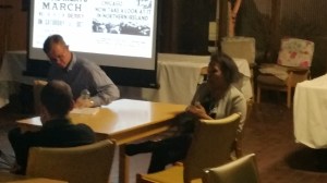 When Brian Hanley took the floor for his talk he fairly zipped along, which he does very well. Hanley undermined some myths or wrong impressions too. Early organisers of the civil rights marches and other events such as the Dungannon house occupation were Irish Republicans; Loyalists had killed four people before the first Civil Rights march. The rhetoric of SDLP and Labour Party notables was much more militant in the early years and Fine Gael was agitating more about issues of discrimination in the Six Counties than was Fianna Fáil, the party in government. And FF had been pushing a referendum to do away with the proportional representation electoral system at the same time that the PR system was among the demands of civil rights campaigners in the Six Counties.