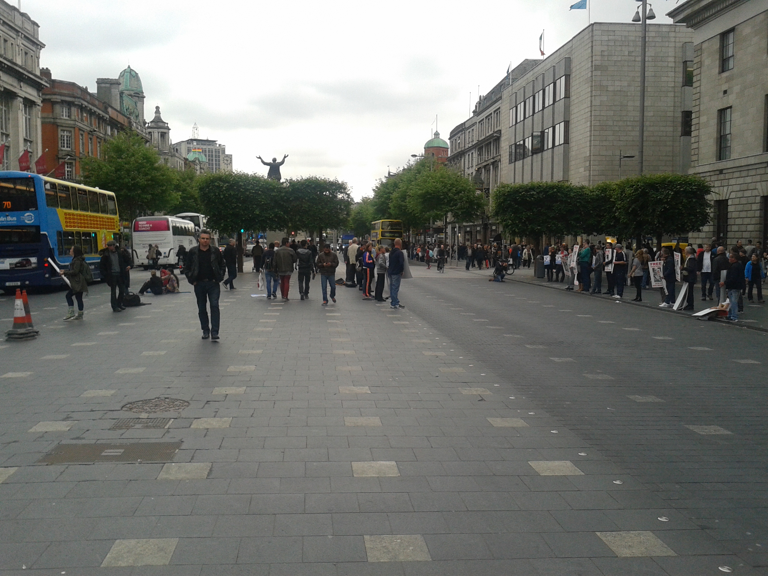 Protesters in Dublin outside GPO demand freeing of Steven Bennet (view northward excluding some on west side of central island)
