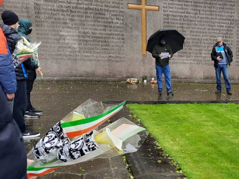 The event was organised by Irish Socialist Republicans and Anti-Imperialist Action Ireland. In addressing the attendance Pádraig Drummond, chairing the event, pointed out that they were commemorating the Sixteen executed Martyrs of the 1916 Rising but that 15 of them had been murdered. Those had been tried by military court and even the British reviewing the actions later had agreed that the executions had been illegal; therefore Drummond said those 15 had been murdered and General Maxwell1 was a war criminal.