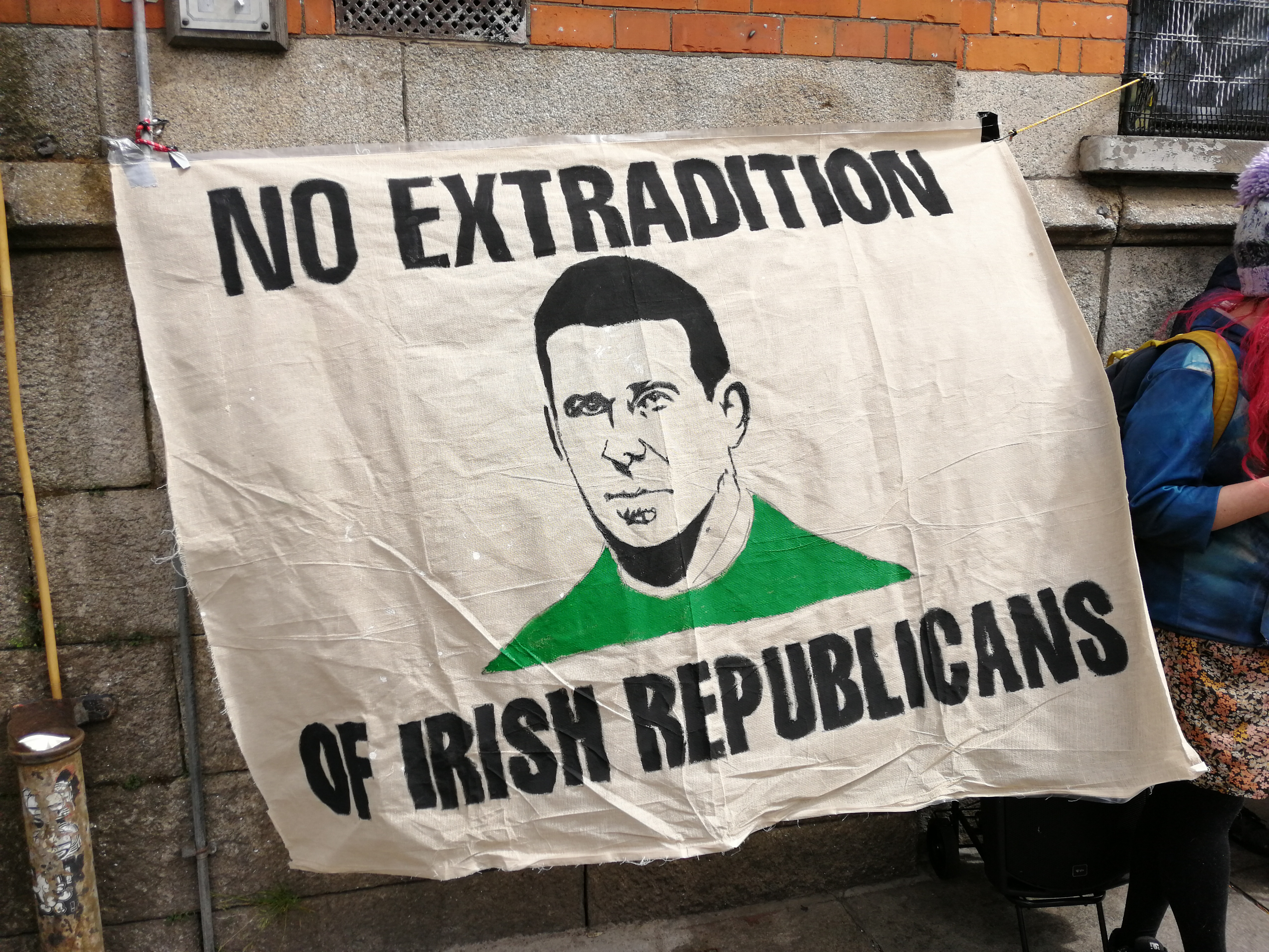 Independent Dublin Republicans organised solidarity pickets outside the court on the mornings of Denneghan’s appearances, while Anti-Imperialist Action held a picket against extradition outside the nearby Heuston Train Station and a more recent banner drop on the Fairview Pedestrian Bridge.