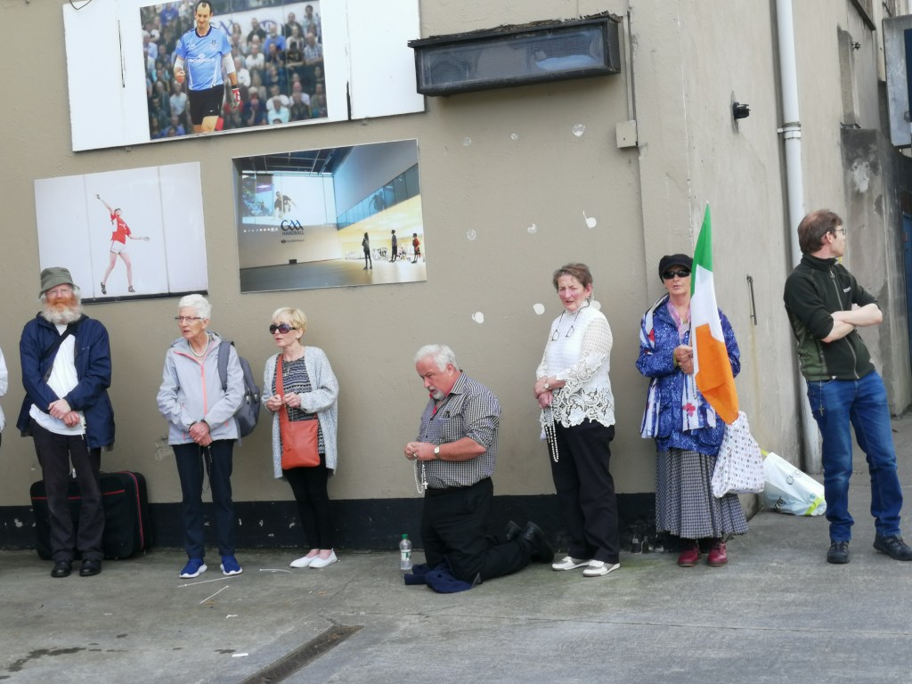 Devoutly sectarian — part of the Islamophobic protest praying the rosary (Photo: Dublin Republicans Against Fascism)