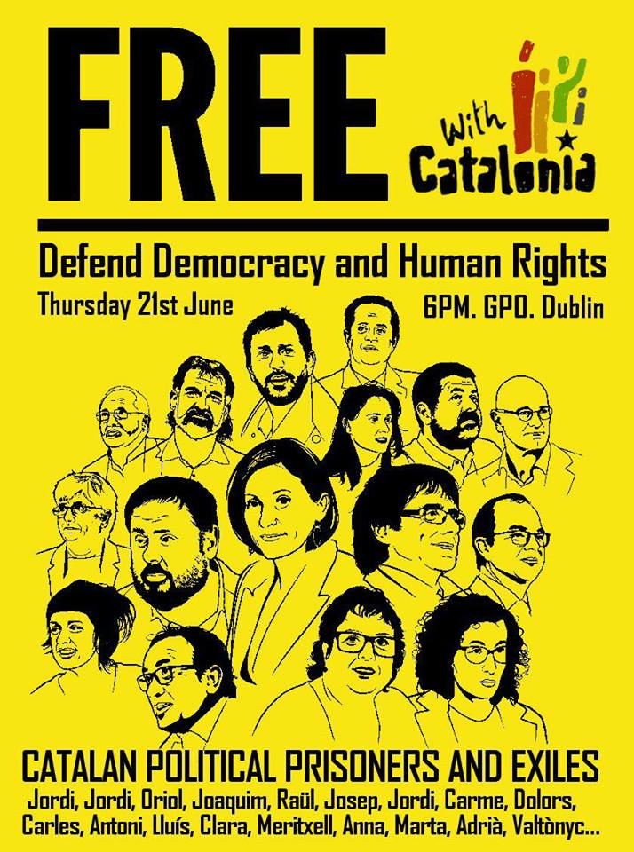 The Diada, national day of Catalan identity and of resistance was celebrated in Dublin’s Merrion Square on Saturday 7th September with traditional food, drink, games and music. Catalan independentist flags and banners were also on display as were portrait placards of Catalan political prisoners of the Spanish State.