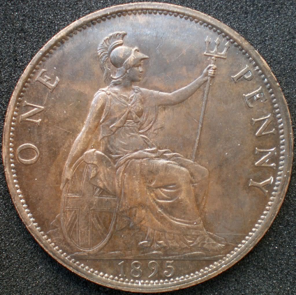 (British penny showing the image of “Britannia” — a martial female wearing a crested war helmet, carrying a shield and holding a trident (perhaps to indicate domination of the seas).