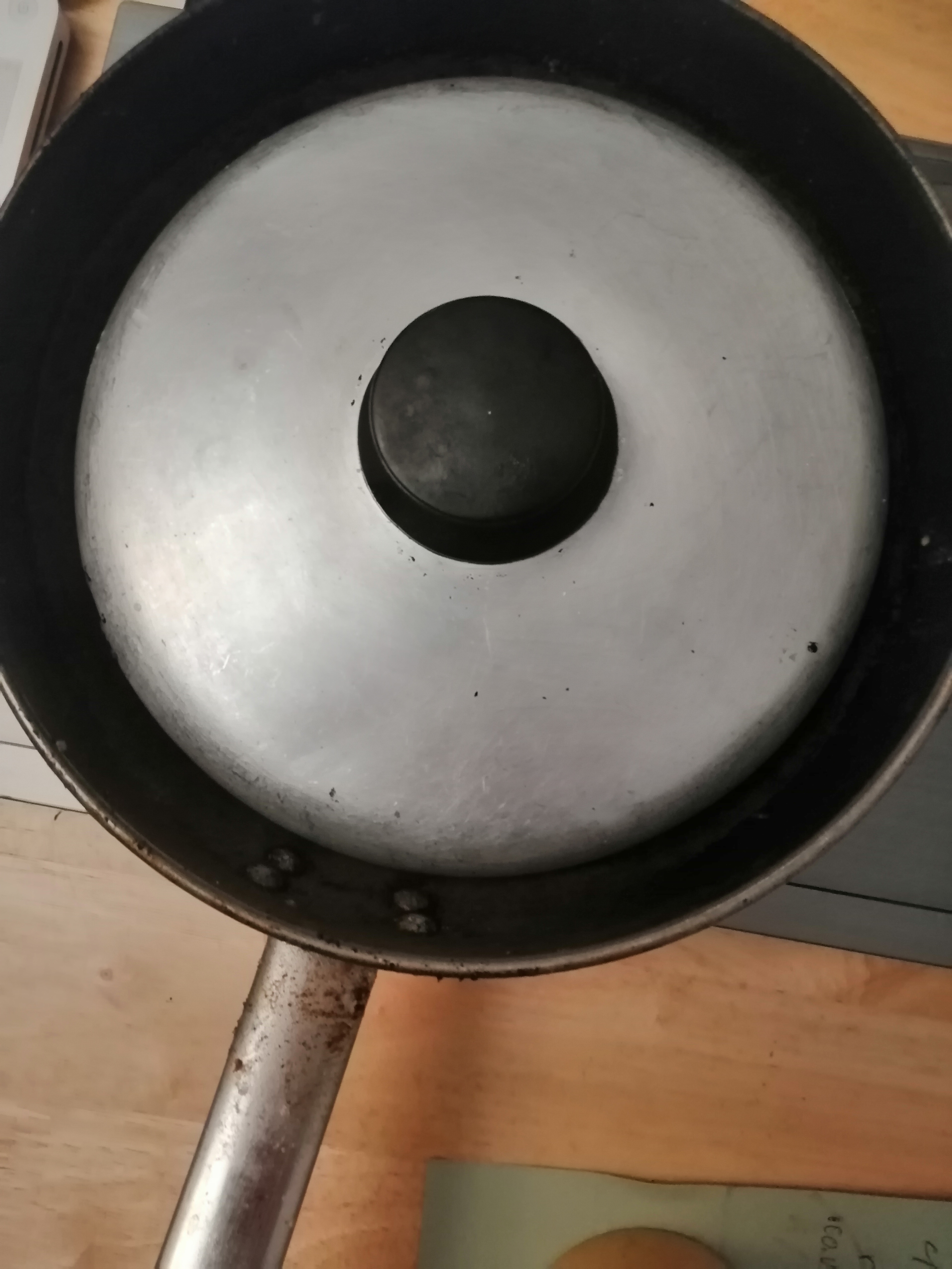 Frying pan for baking bread with a curved lid from a pan to contain heat and allow bread expansion. (Photo: D.Breatnach)