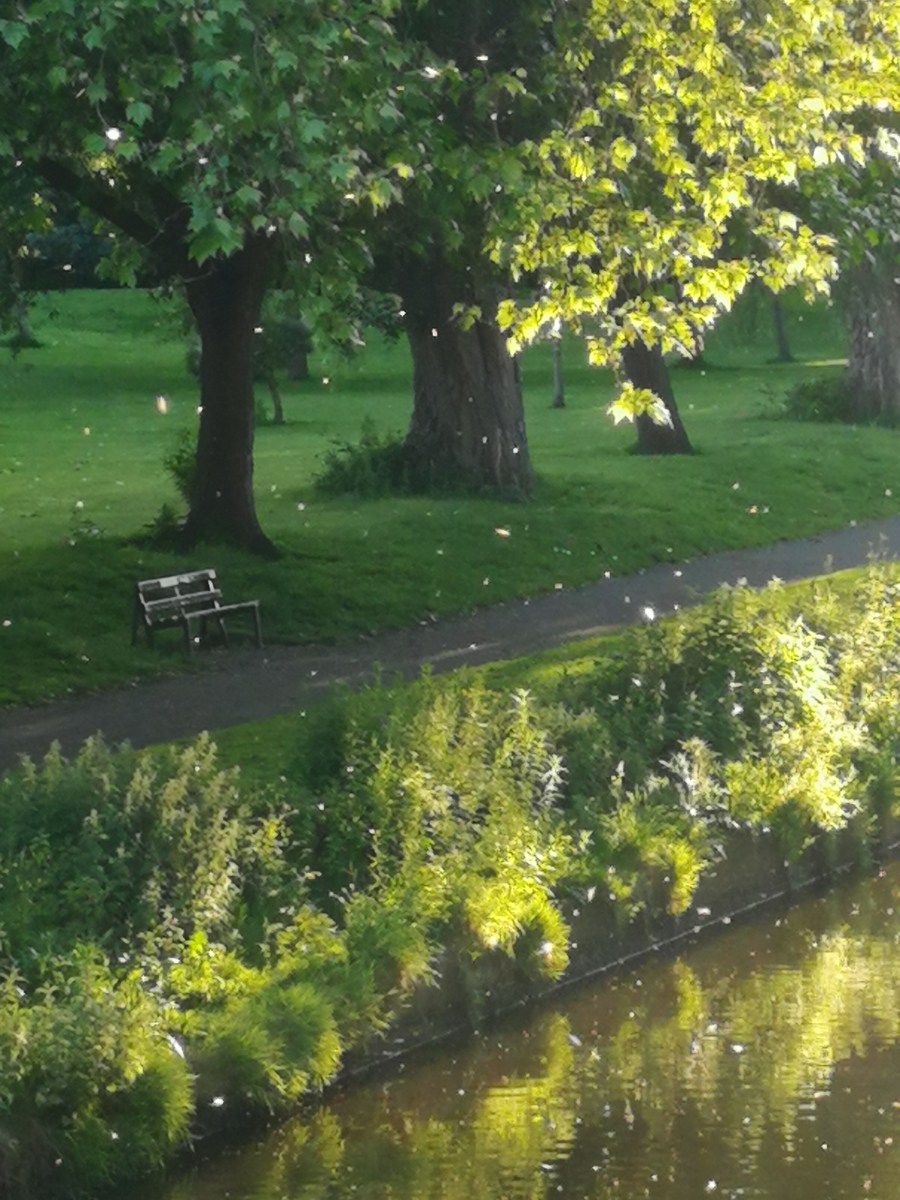On my way to Griffiths Park in the Glasnevin-Drumcondra area on Monday I stopped to gape at a glitter-storm above the street. They were flies, dancing in the sunlight, the slanting light reflected off them. In the Park itself through which the Tolka flows, I saw many more clouds of them, always in patches of the early evening sunlight. These were the Mayfly or Cuil Bhealtaine. I took photos but my phone was unable to capture their true beauty, coming out in the photos more like snowflakes.