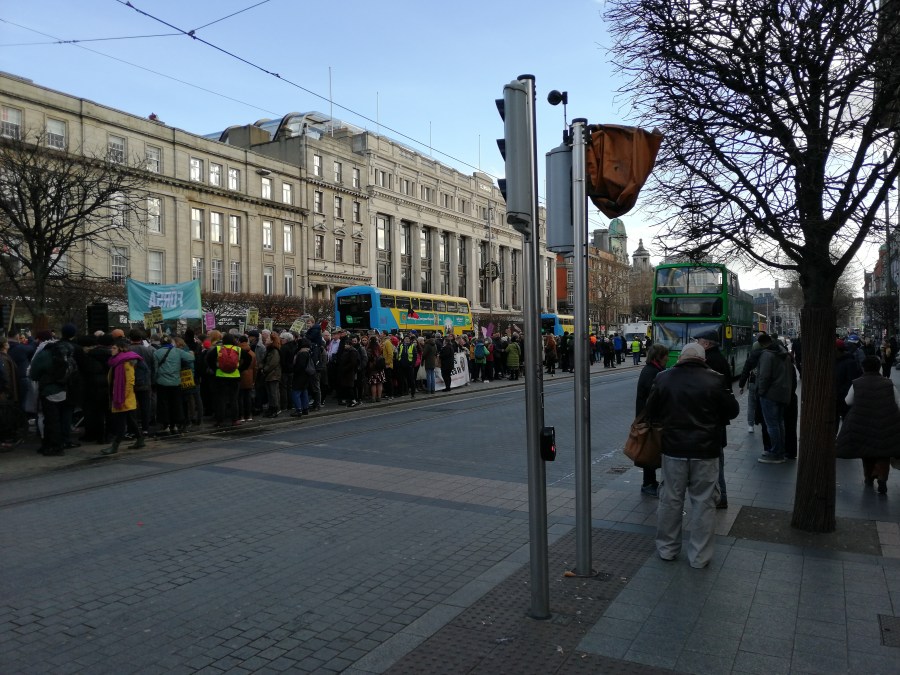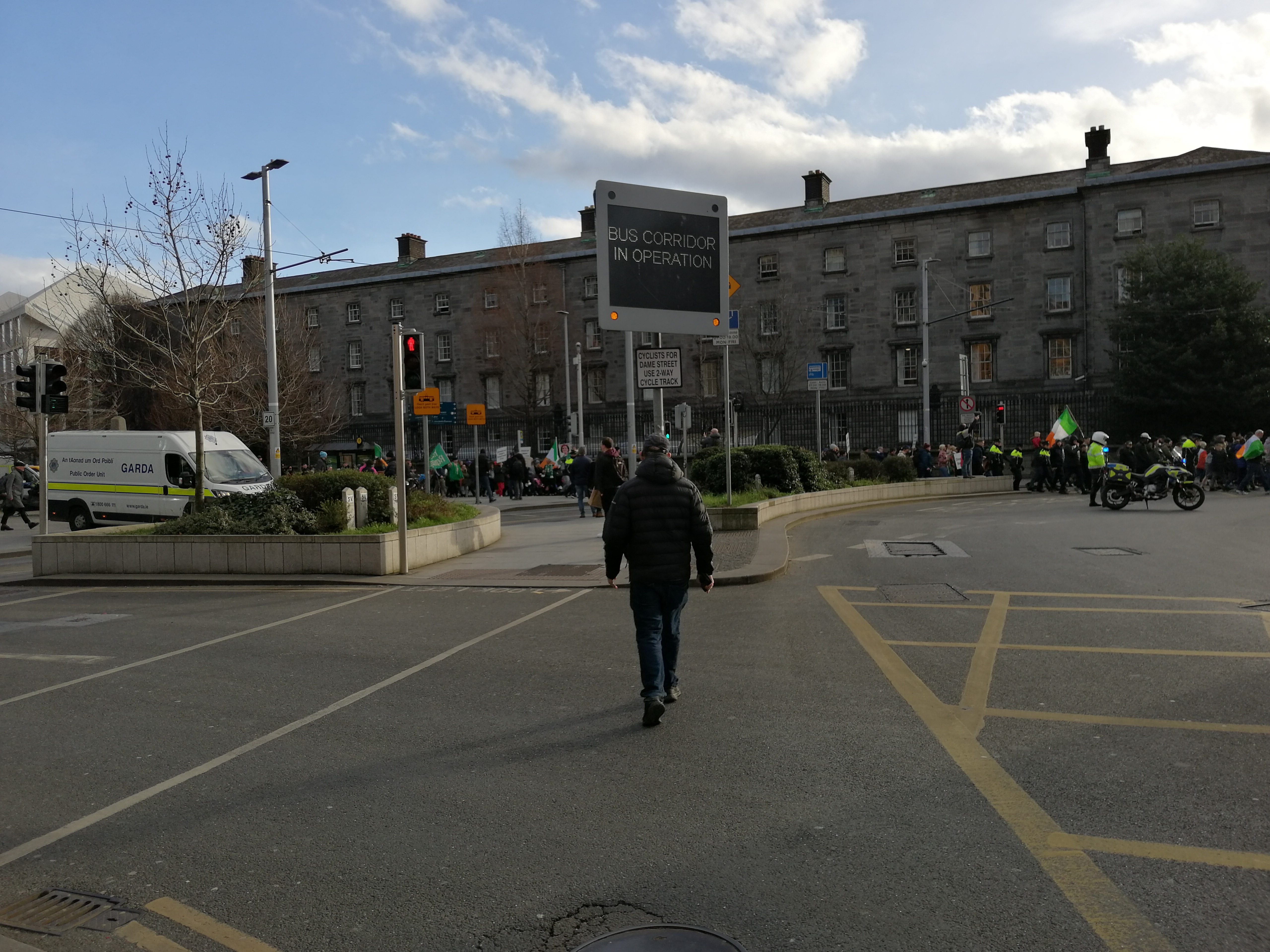 As they filled Molesworth Street towards the IPSC stage and police barriers at the end, facing the Leinster House Irish Parliament building, some marchers already began to leave, having heard speeches before and perhaps heading for their transport back to their earlier points of departure.