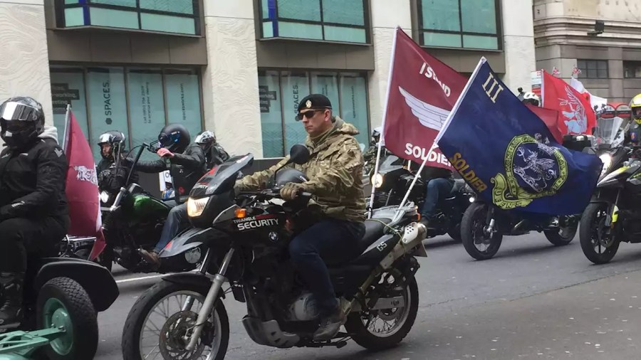 Motorbike rally in Belfast in support of Soldier F, who admitted to firing 13 bullets during the 1972 massacre of unarmed protestors in Derry. (Image sourced: Internet)