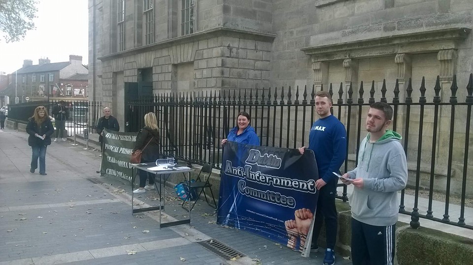 The Dublin Anti-Internment Committee organised an information table on Internment outside the Kilmainham Jail Museum on Sunday 11th September 2016. The purpose of the exercise was to make tourists and other visitors aware of the ongoing repression and civil rights abuse that is going on in Ireland which is internment by another name. As their leaflet points out, Republicans opposed to the British colonialism or to economic attacks on their communities and who organise against them are being targeted in a process that sees them arrested, charged with ‘terrorist’ offences, refused bail (or granted only attendant by ridiculous restrictions) and then, when the case against them collapses much later and they are freed, they will still have spent years in jail.