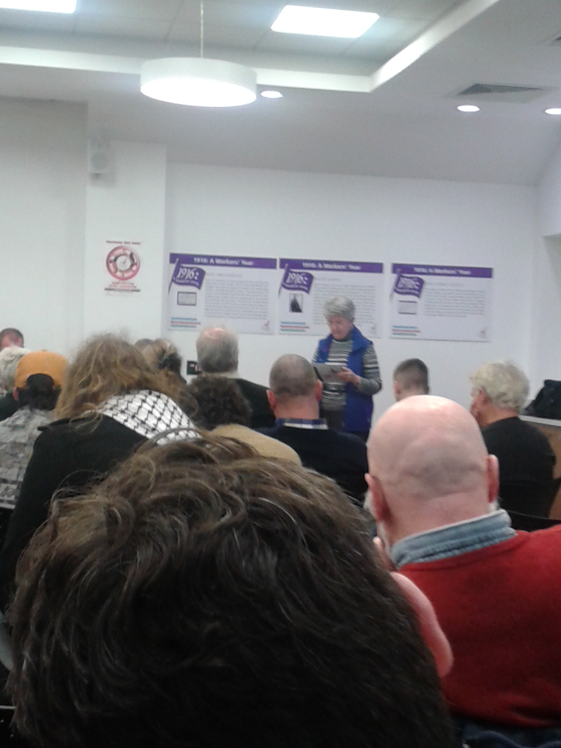 Ellen Galvin spoke about Walter Carpenter’s life and his dedication to the advance of the working class and the struggle for justice. Walter had been a supporter of equality for all, including gender, a man who read much and widely, who apparently learned Irish and campaigned for allotments for rent on Council-owned land while it was unused for housing. He was against the consumption of alcohol but sympathised with people driven to its use by terrible housing conditions.