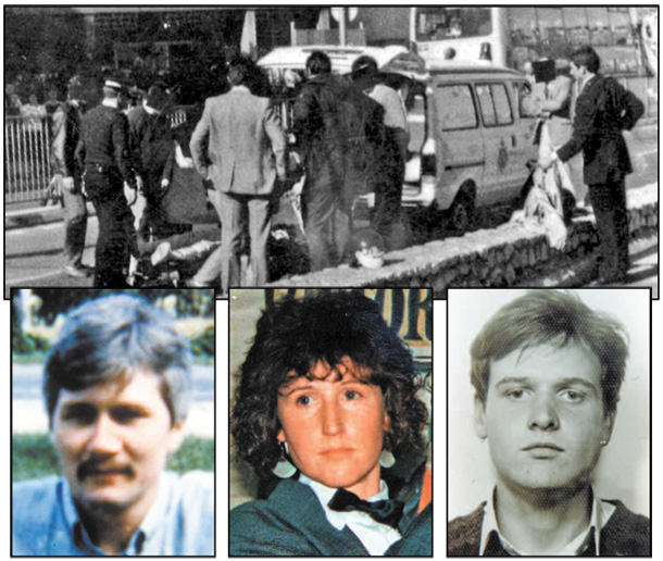 Above: Gibraltar 3 murder scene. Below: Daniel McCann, Mairéad Farrell, Sean Savage. (Source: Stair na hÉireann)