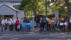 CROWD AT BRITISH EMBASSY DUBLIN CALLS FOR RELEASE OF JULIAN ASSANGE