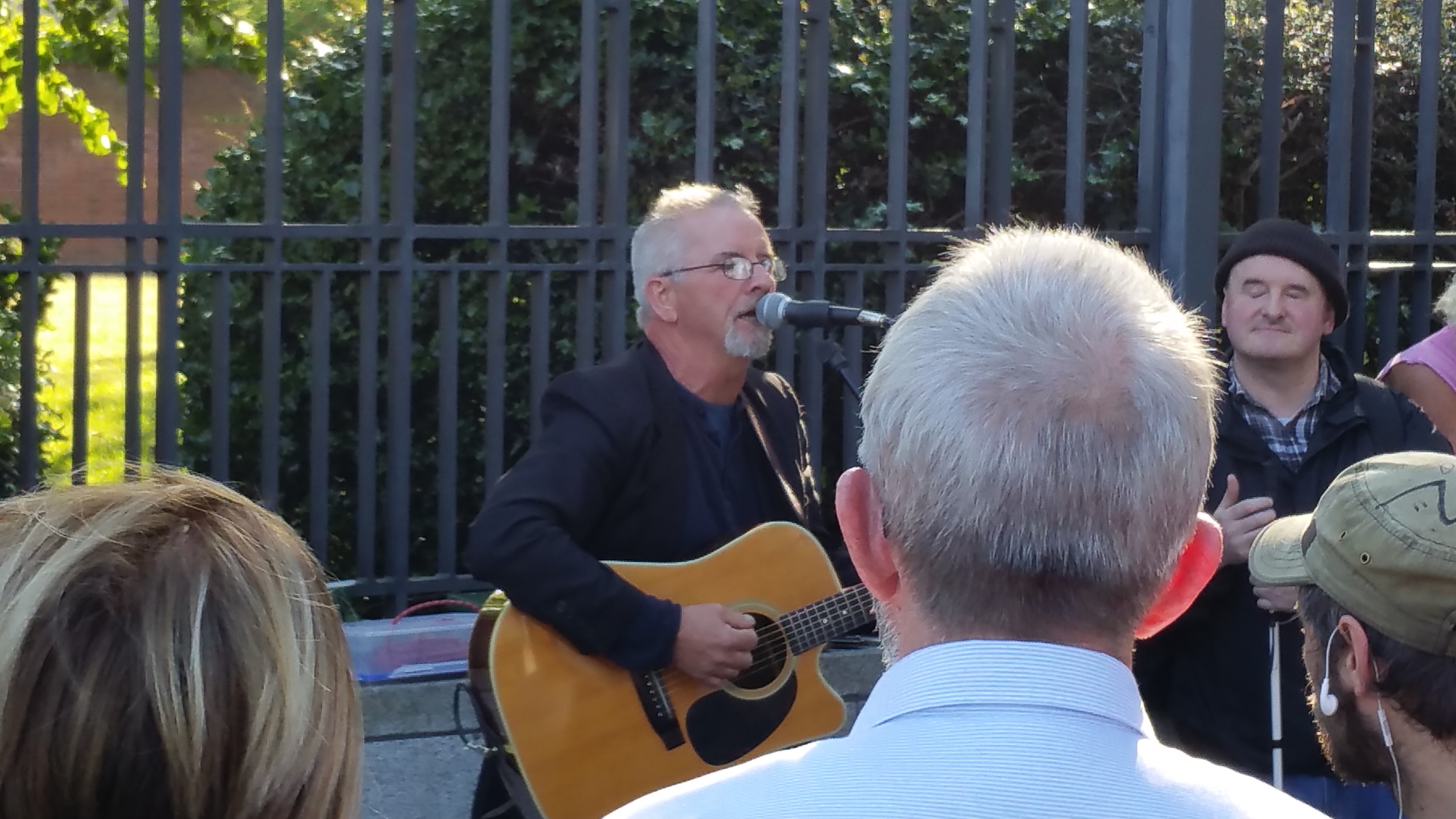 Paul O’Toole played two songs, one of which was The Cry of the Morning, a song about internment. The other musician played some tunes and then led the crowd in singing “All we are saying, is free Julian Assange.”