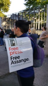 All the speakers outside the British Embassy made the point that Assange’s only crime is to reveal some murderous secrets of the USA and other powers and that if he can be jailed then so can anyone for speaking or publishing the truth. Clare Daly said that his crime was to be a conscientious reporter.