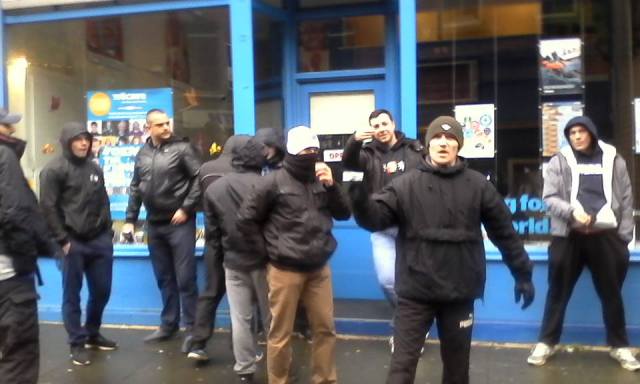 Fascists of E. European origin make their presence known in North Earl Street through threats and insults. (Photo source: Antifascist photographer)