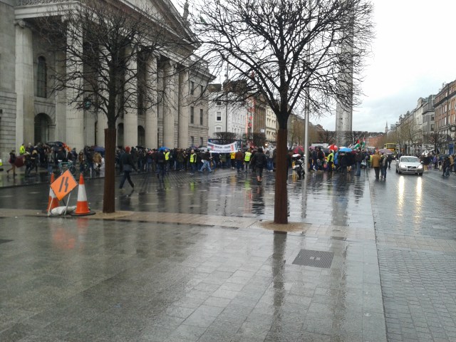 Long before the planned Pegida rally, anti-racists and antifascists had occupied the intended space outside the GPO, while groups of anti-fascists mingled with curious bystanders on the other side of the street. Quite soon, some fascists of Eastern European background began to insult some women and also to threaten a filmmaker from Rabble, an independent alternative media organisation, calling him a “ fucking communist”.