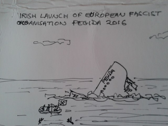 Launch of the Pegida ship in Dublin. (Cartoon D.Breatnach)
