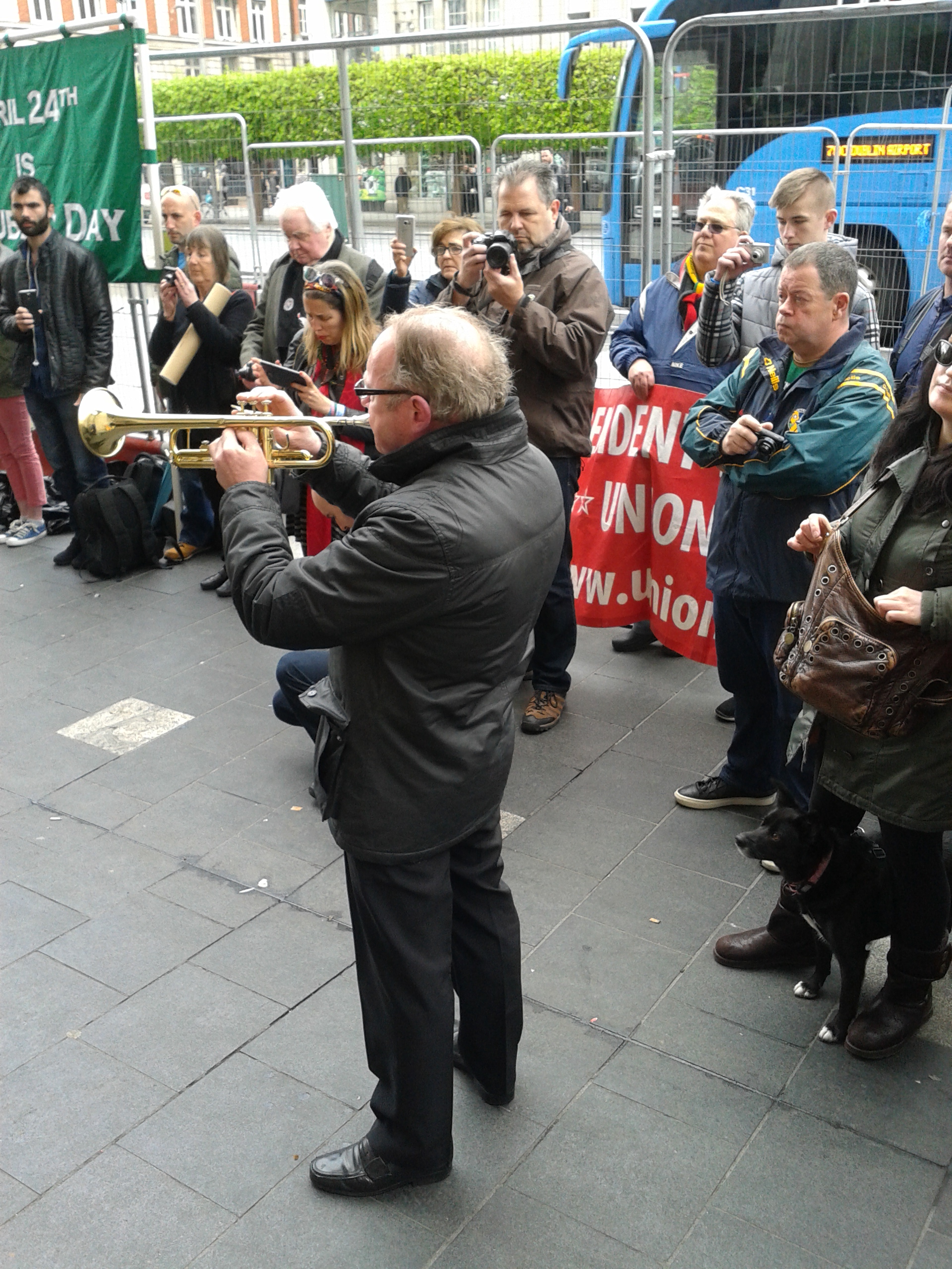 Bugler Bob Byrne sounding The Last Post. (photo: D.Breatnach)(photo: D.Breatnach)(photo: D.Breatnach)(photo: D.Breatnach)(photo: D.Breatnach)Dave Swift reading Connolly’s statement after he had been wounded. (Photo: D. Breatnach)