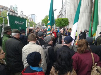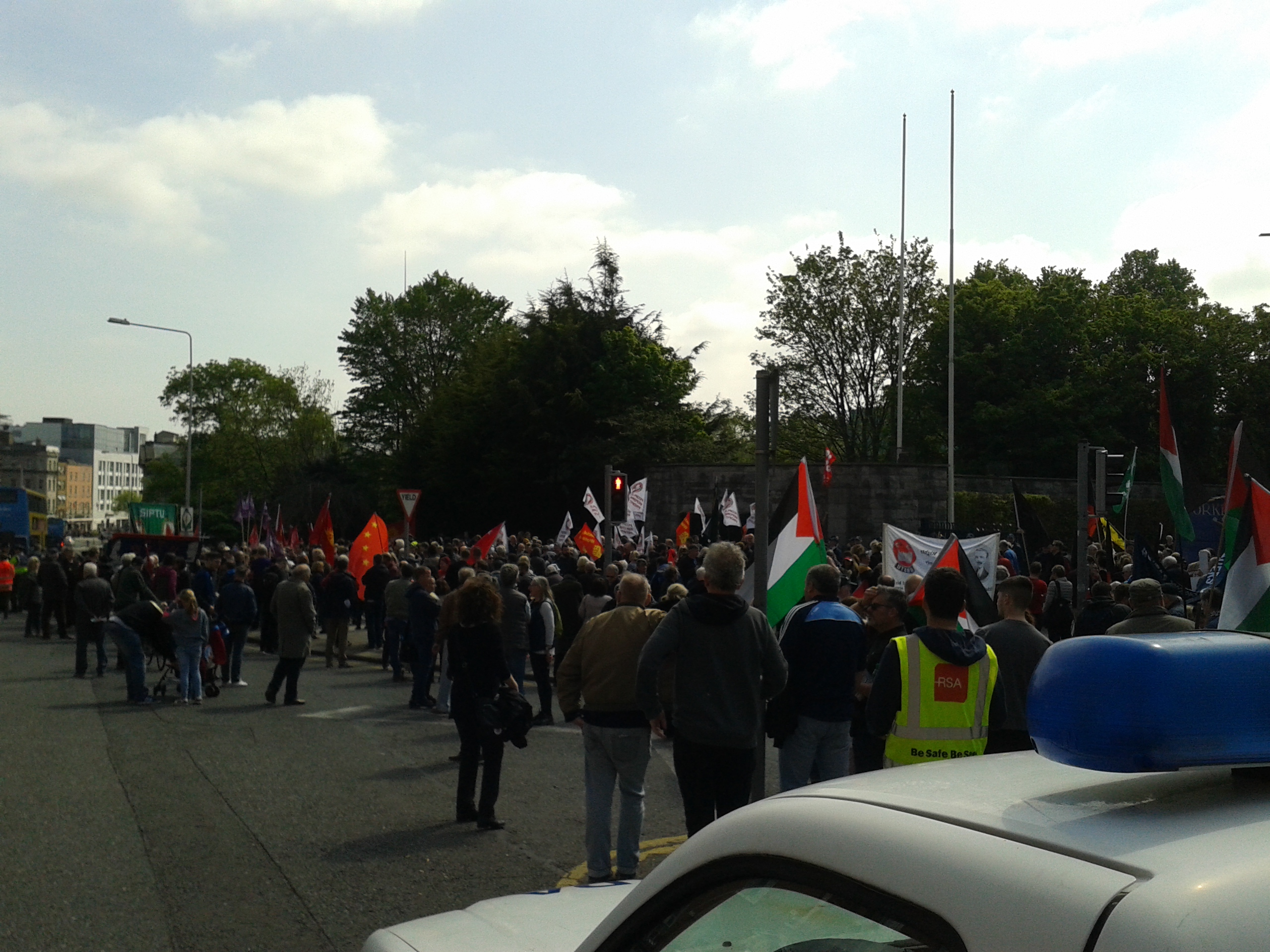 The issues of lack of affordable housing, of public land being sold for private housing and speculation, of precarious employment, of financial speculation and cuts in services were addressed by speakers, with a mention also of solidarity for the Palestinian prisoners on hunger strike. A number of speakers also addressed the treatment of migrants and in particular the conditions suffered by refugees in the Direct Provision hostels of the state’s welfare service.