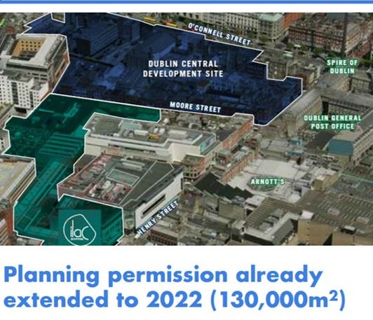 And Hammerson property speculators, who now own half the ILAC shopping centre, still hold the planning permission for the construction of a giant ‘shopping mall’ from Moore St. to O’Connell St., on the 1916 Battlefield, which should be a National and International Monument.