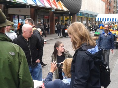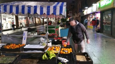 As the modern-day battle for Moore Street intensified, Dublin City Council installed not one but two full-time Market Inspectors on the street, which had previously functioned well with one Inspector visiting in the morning and evening. These market inspectors have no role in preventing antisocial behaviour or in monitoring the quality of the food on sale and their main activity seems to consist of telling stall-holders what they may not sell1, or that they are placing merchandise beyond the strict limits of their stall area (in a street which now holds at maximum fifteen stalls, where once before there were many times that number), or that they have continued trading some minutes beyond their official closing time. And they are not permitted to sell on Sundays while, of course, the supermarkets bracketing them, Lidl and Dunnes, face no such restrictions.