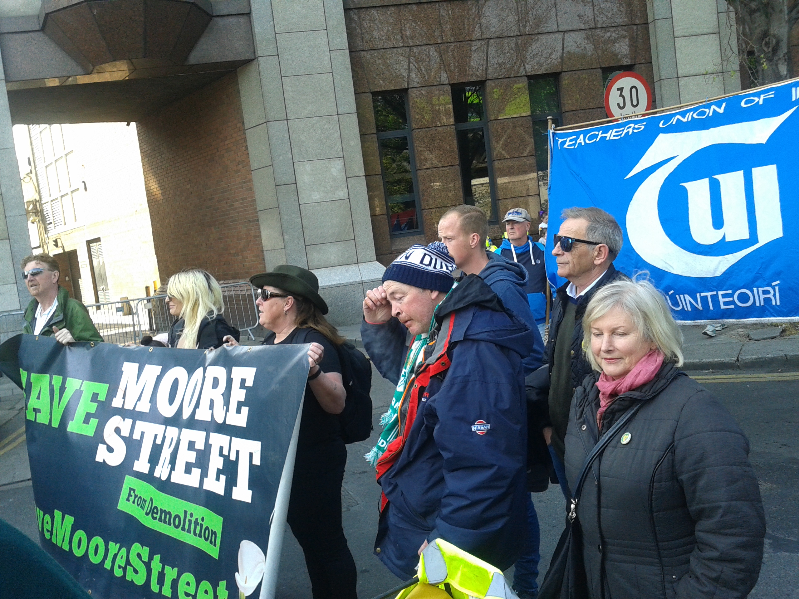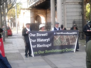 The Minister took her time deciding whether to appeal the judgement and at the deadline, announced that she would, with the support of the Cabinet and other departments. Then she set up her Consultative Forum, from which she excluded the most active of the campaigners, including the Save Moore Street From Demolition campaign which has just passed its 136th consecutive Saturday on the street collecting over 80,000 petition signatures and distributing leaflets. Also excluded have been the Save Moore Street 2016 campaign group, a broad alliance of people from different organisations and none that arose out of the occupation and blockade of the buildings in early 2016.