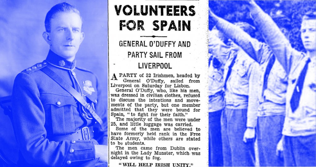 Even the Irish Press, paper of De Valera who had banned the Blueshirts earlier: …. “These idealistic young men also saw their participation in the Spanish Civil War as helping to solve political divisions in Ireland and ultimately Irish unity. Interviewed in Dublin prior to his departure for Spain, Capt. P. Quinn from county Kilkenny, made the following statement: I believe that if an Irish Brigade succeed in reaching Spain, and there fights against Communism and all its terrors ….”
