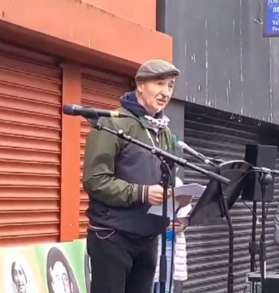 The MC acknowledged the presence in the crowd of SF Councillor Janice Boylan, with relatives among the street traders and standing for election as TD and Clare Daly, also standing for election but as an Independent TD in the Dublin Central electoral area.