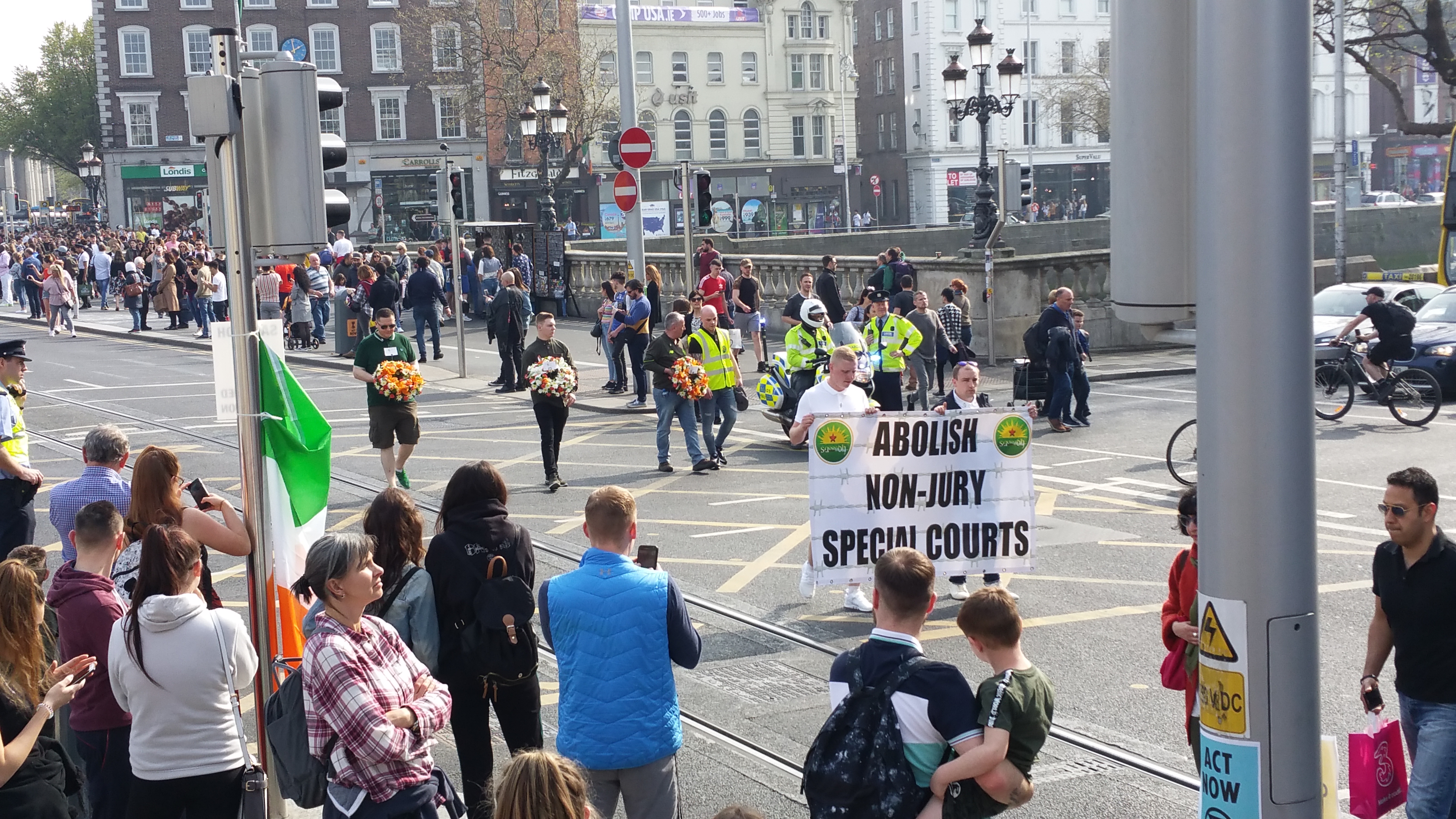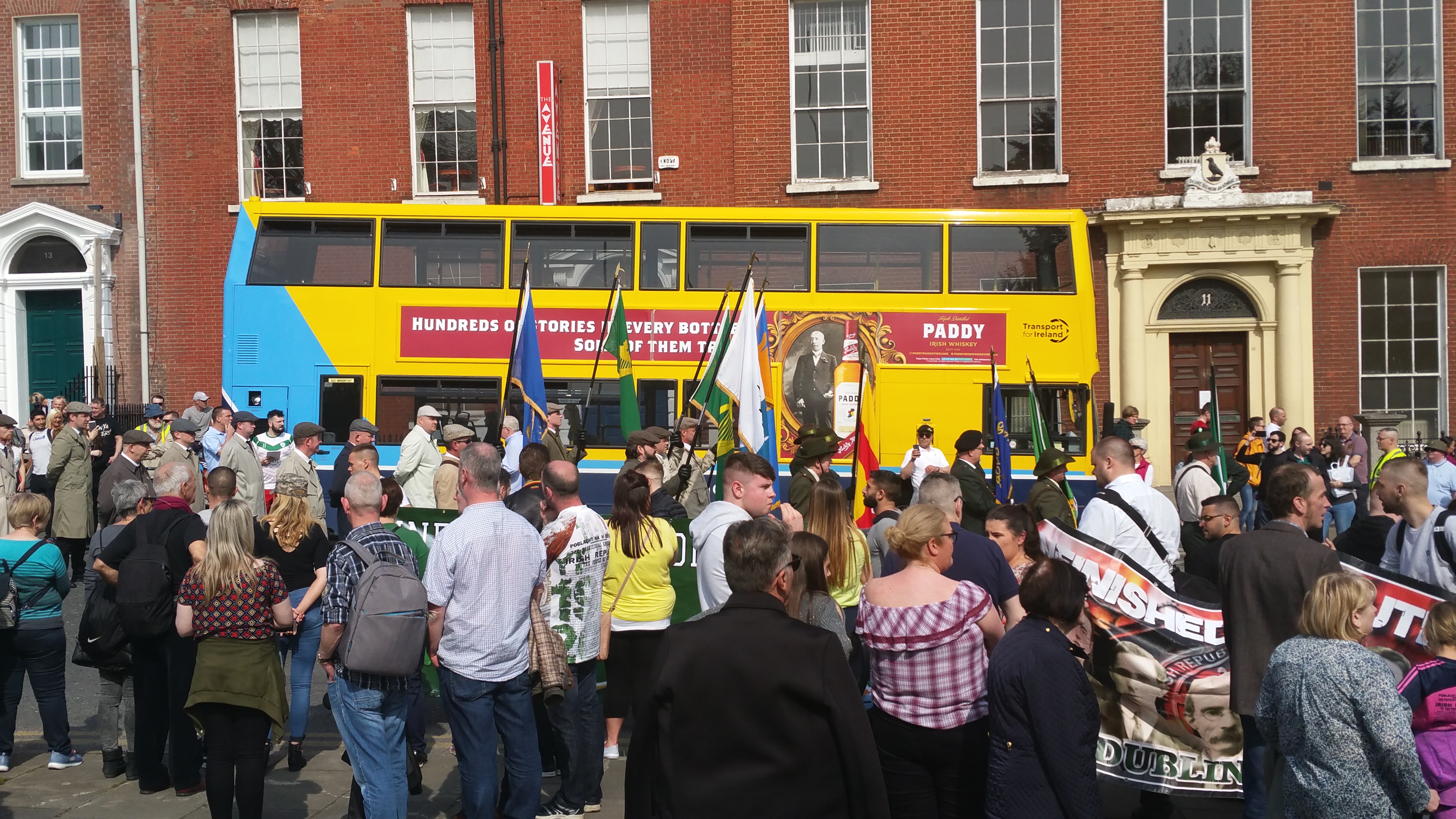 On Sunday participants in a 1916 Rising Commemoration organised by the Irish organisation Anti-Imperialist Action were harassed by police as they gathered to march to the Irish Citizen Army Republican plot in Glasnevin Cemetery.