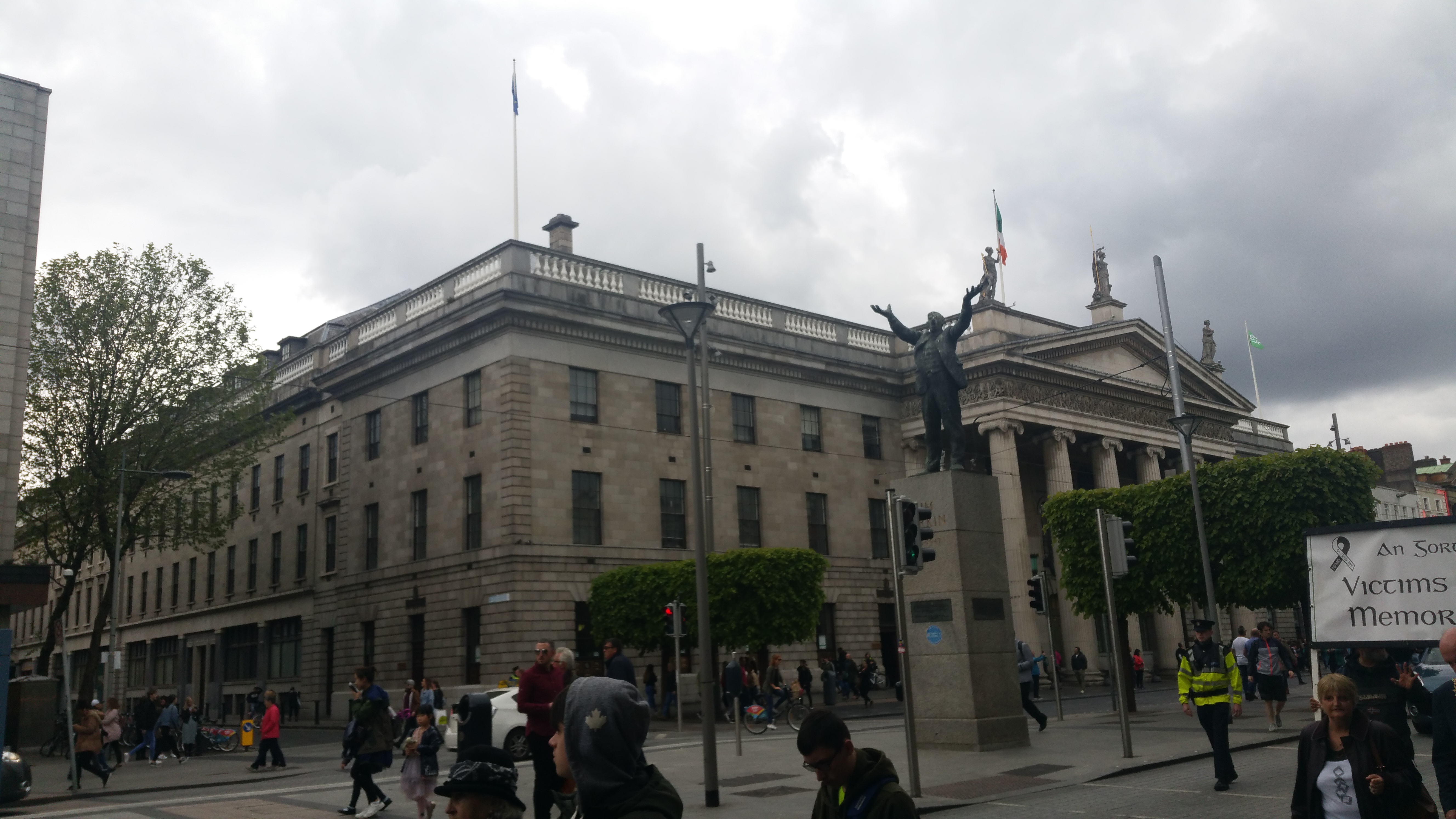 The occupying British Army shelled the city centre from a gunship in the river Liffey and also from artillery on land. Explosions and resulting fires destroyed much of the city centre including the General Post Office in the main street, which had been the headquarters of the insurrection.2