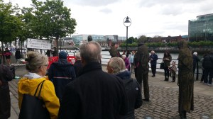 Three songs were sung: a woman sang The Foggy Dew (by Charles O’Neill) and Erin Go Bragh (by Peadar Kearney), while a man sang Patrick Galvin’s Where Is Our James Connolly? Two women read out pieces by James Connolly and another read out the 1916 Proclamation.