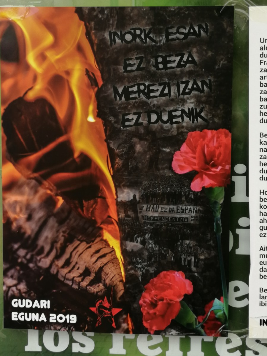 Flags fluttering included those bearing the logo of the organising group Anti-Imperialist Action and others bearing the slogan “Always Anti-Fascist”, green-and-gold Starry Ploughs, a couple of Ikurrinak (Basque flags) and another two of Red with Hammer & Sickle in yellow.