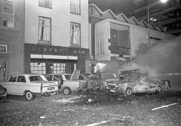 A photo of the bombing adjacent to Liberty Hall (Photo source: Internet)