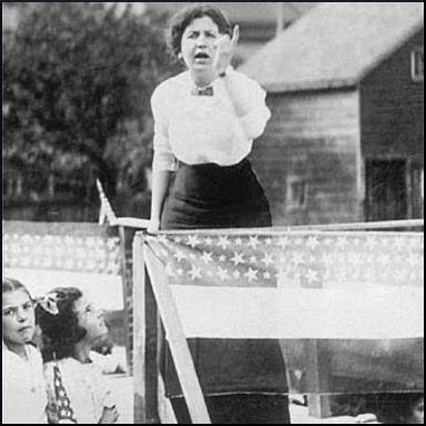 Elizabeth Gurley Flynn speaking at a mass meeting in the USA (Source photo: Internet)