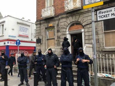 A few days after that, Gardaí turned up with machine guns and a battering ram to a house where a couple were in dispute with their landlord, leaving when supporters of the couple arrived.