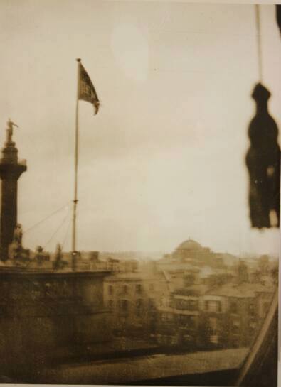 In between the shop and the Rotunda stands the Parnell Monument, as it did then, honouring “the uncrowned King of Ireland”, who had tried by mostly parliamentary means, two decades earlier, to bring about Home Rule for Ireland and had failed. British officers had been photographed in front of the monument with the “Irish Republic” flag held upside down – had they been entirely conscious of the irony?