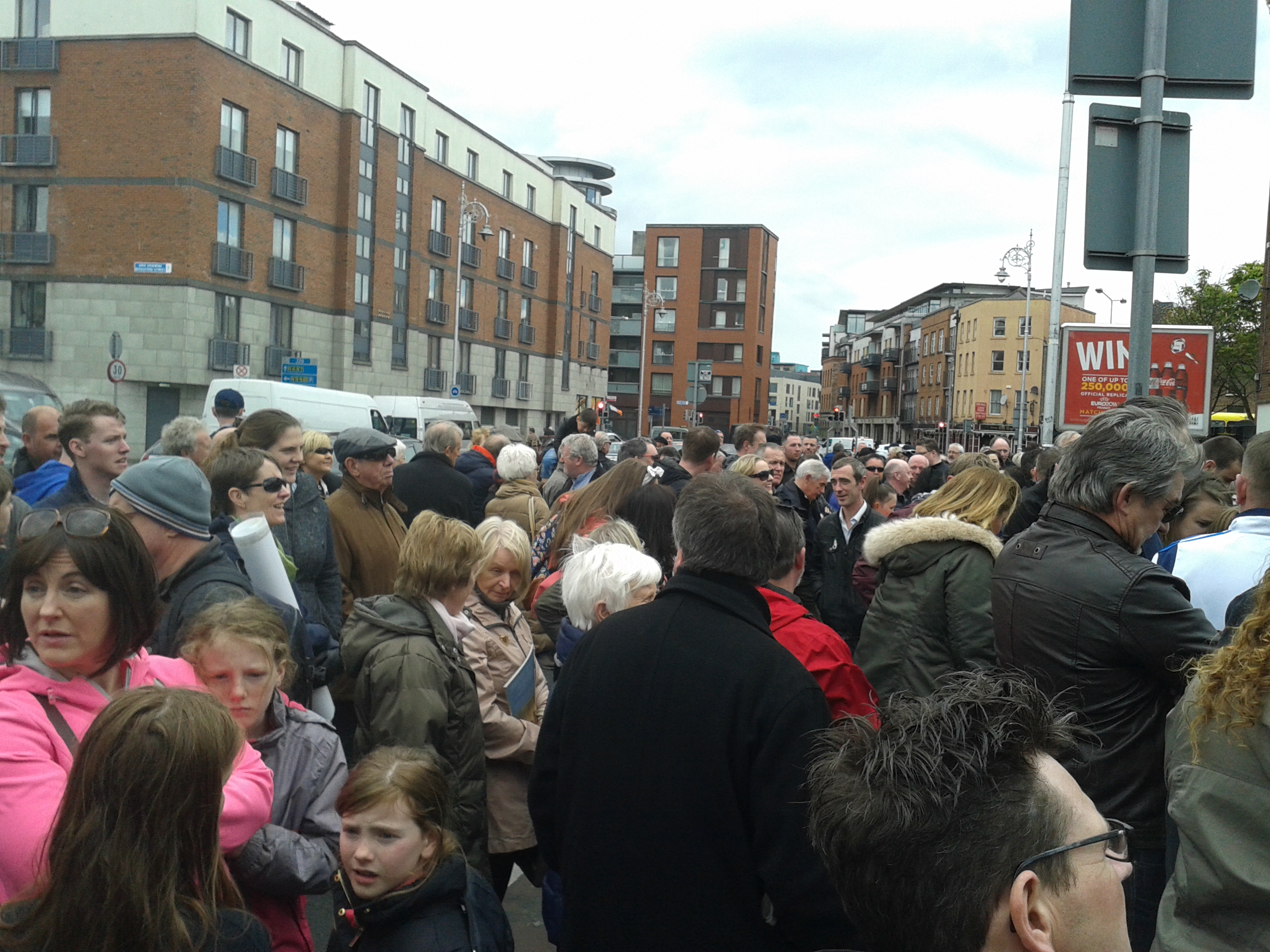 Dr. Mary Muldowneyof the Smithfield and Stoneybatter People’s History Project presided at the short ceremony. However, the amplification seemed poor and most people failed to hear what was being said. A number of “We can’t hear!” calls resulted in slightly better volume but still not enough for most to hear. A song that had been specifically written about the massacre was played but the same difficulty prevailed.